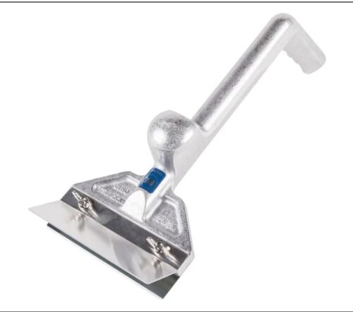 Easy Grill Scraper™, 4″H x 6″W x 16″L, constructed of aluminum with 6″W x 1-3/4″D stainless steel blade, for left or right-handed use, ergonomic